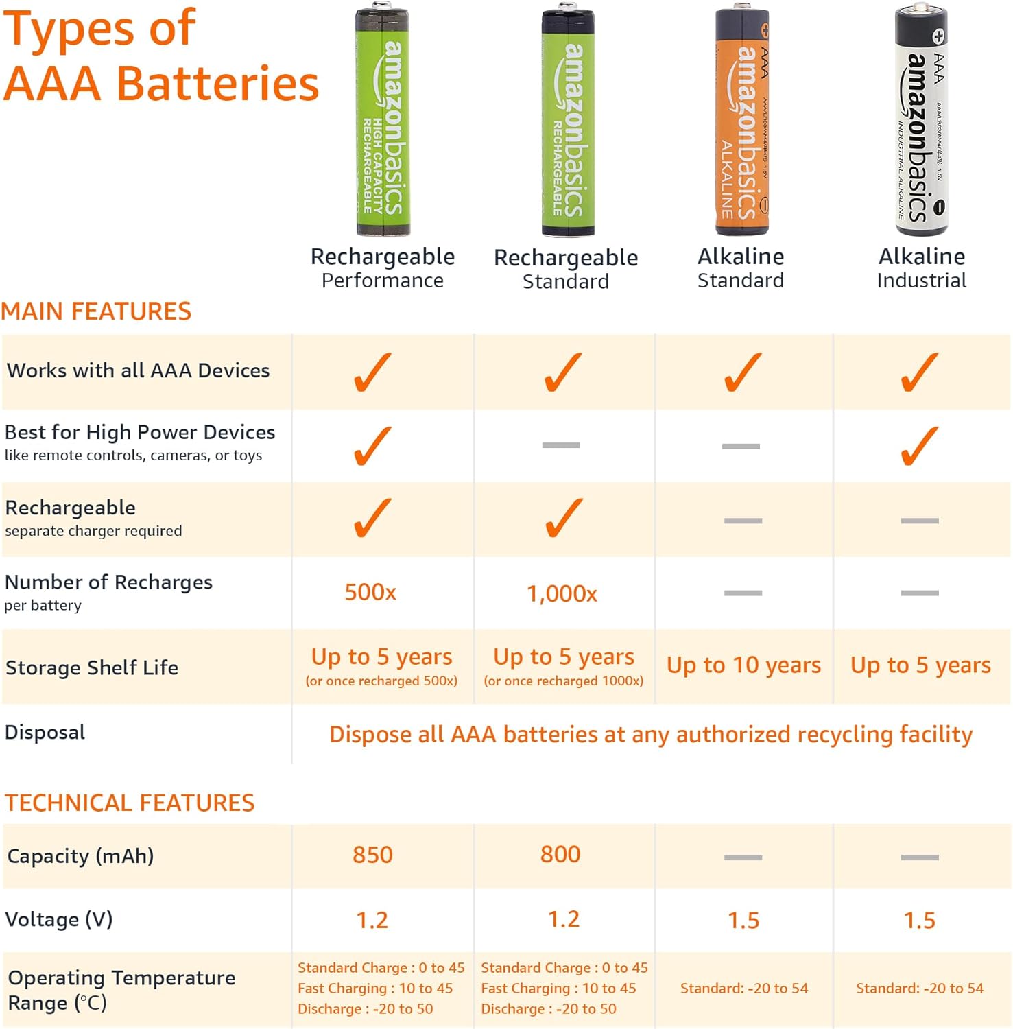 - Single-Use: Amazon Basics Triple A batteries are single-use batteries & NOT rechargeable. Packaging may vary