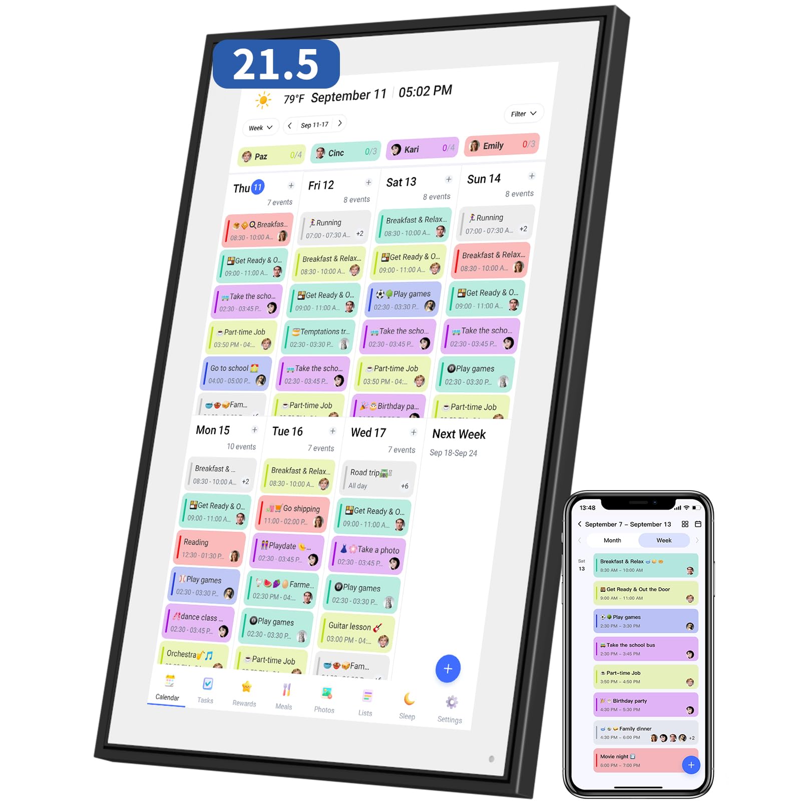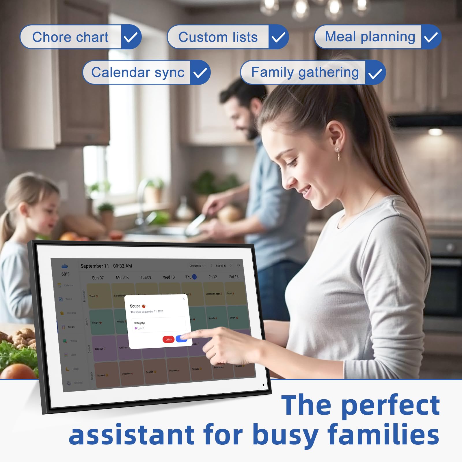 - 3️⃣ 【✅ Interactive Chore Chart & Family Task Manager】Our electronic calendar for family organization makes chores fun! Assign tasks, track rewards, and manage weekly meal plans with the built-in digital schedule system. Includes FREE grocery lists and to-do lists!