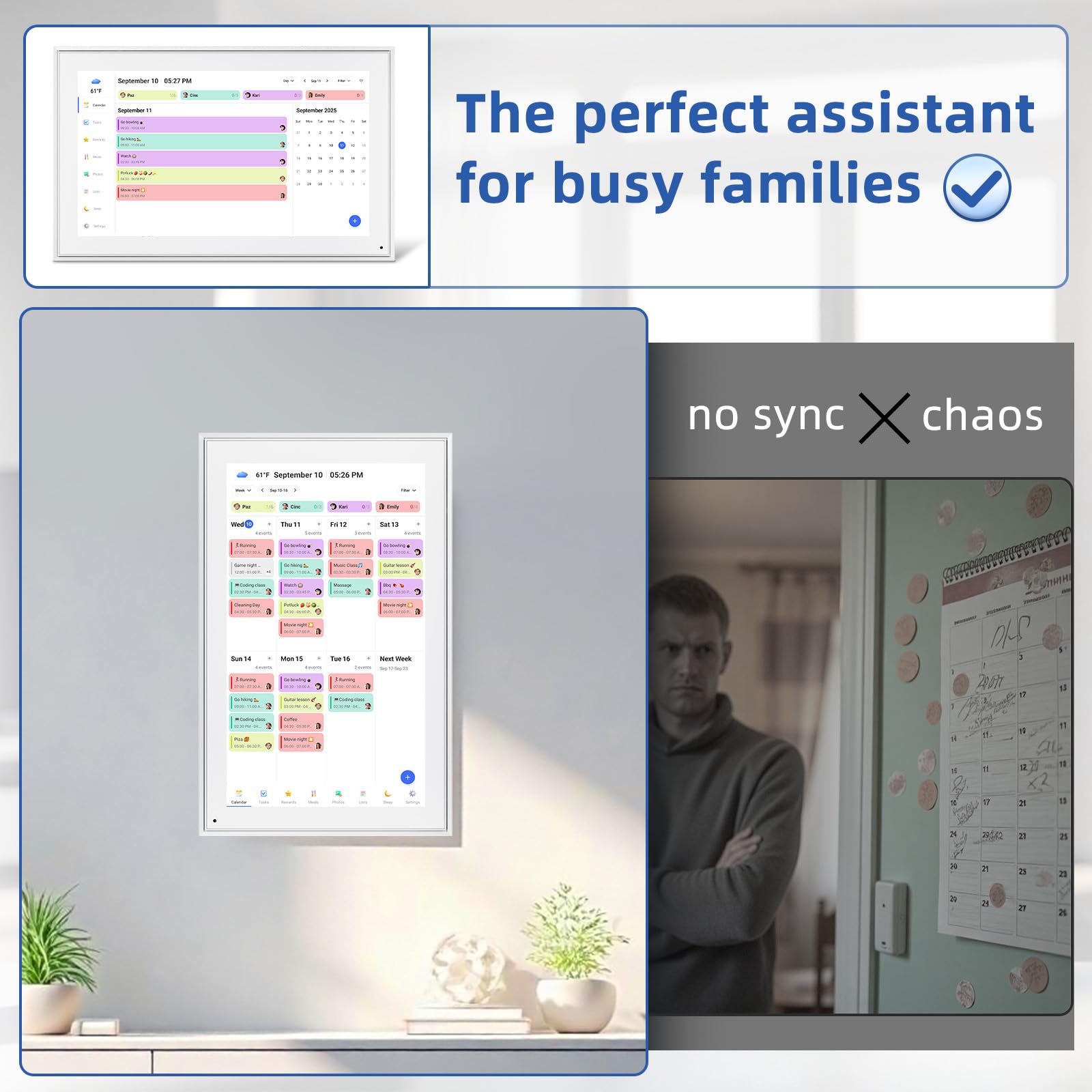 - 1️⃣ 🏡【All-in-One Family Calendar & Digital Planner】Sync seamlessly with Apple/Google calendars! This smart calendar features color-coded schedules for each family member - never miss soccer games, doctor appointments, or school events with our intuitive 2025 calendar system.